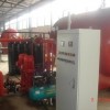 氣體頂壓設備,給水設備,壓力罐,水泵,????設備組成:壓力罐、穩壓泵系統、汽瓶系統、汽泵、及控制系統。??2、????穩壓泵系統啟動與運行:啟動前首先向壓力罐及系統里充水,充到一定程度后,啟動穩壓泵繼續向系統打水,直至把穩壓罐內的水位提高到設定的水位上限即M1時,穩壓泵(兩臺一備一用)自動停止,這時如果壓力處在系統設定的壓力下限P2(P1為系統壓力上限,??P2為系統壓力下限)以下時,汽泵自動向罐內補氣直到壓力達到設定的穩壓系統壓力上限P1時汽泵停止。這是一個穩壓周期的完成,此時整個消防系統處在穩壓狀態。當系統內泄漏壓力下降到P2時,磁翻板液位計檢測到罐內水位如果下降了,當水位降至設定的水位下限M2時,穩壓泵系統自動啟動,向系統內補水,補到系統設定的水位上限時M1,水泵停止。(如果在補水的過程中罐內壓力過高,即高于設定的穩壓系統壓力上限,這時罐頂的電磁閥D2自動打開泄壓,以保障水能補到設定的水位),如果此時系統壓力低于系統設定的壓力下限時,這時汽泵自動啟動向罐內補氣,??一直補到系統設定的壓力上限P1時汽泵停止,如此反復運行以保證穩壓系統處在設定的水位(M1---M2)及壓力(P1---P2)范圍內,達到穩壓的目的。??3、????氣瓶系統:氣瓶組配有氣瓶N只、各氣瓶通過管路與一條DN25的管路相連,DN25管路與氣壓罐頂部相連,管路通斷由電磁閥D1控制,氣瓶內壓力在(12MPa---15MPa)公斤,出口壓力設定為系統的下限壓力以下P4=0.42。平時氣瓶系統并不工作一直處于休眠狀態,有火災發生時才投入工作。工作過程為當有火災發生時,穩壓系統壓力急劇下降,當下降到P4時,氣瓶組電磁閥D1打開,氣瓶組的高壓氣體伴隨氣泵的高壓氣體迅速打到氣壓罐內,把氣壓罐里的水迅速打到管道內,以保證10分鐘的應急消防水源供給。??