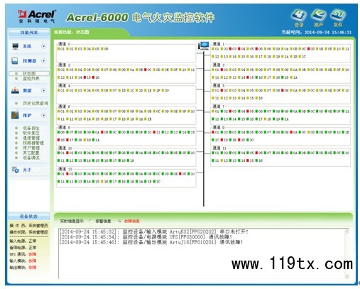 Acrel-6000系列監控設備是整個電氣火災監控的最頂端,可連接多臺ARCM系列探測器,組成一套功能齊全的電氣火災監控系統,具有聲光報警功能,并同步顯示報警回路,其報警信息可以保存12個月以上,后備不間斷電源可以保證市電失電后連續運行4小時以上,監控系統分為壁掛式、琴臺式和柜體式3種,有效通訊距離可達1200多米,多臺設備之間或者設備和其他系統如報警與消防聯動系統、電力監控系統等可進行數據交換。并且該系列監控設備具備自檢功能,從硬件、軟件、通訊線路、電源各個方面進行系統自檢,以隨時掌握系統產品運行狀態,保證系統運行的可靠性。
