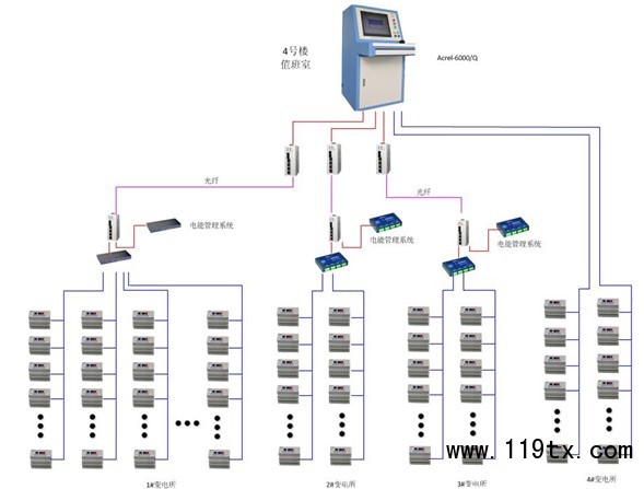 本工程共分為4棟大樓,分別為1#、2#、3#、4#大樓。其中1#樓包括西側北區(60個回路)、西側南區(49個回路)、東側北區(69個回路)、東側南區(47個回路),2#樓共28個回路,3#樓共28個回路,4#樓共6個回路且均位于地下室,本工程在配電柜現場均安裝ARCM300系列剩余電流監控探測器及AKH-0.66/L型剩余電流互感器。在消防控制中心設漏電火災監控設備Acrel-6000/Q500電氣火災監控系統便于新聞中心工作人員進行統一管理。