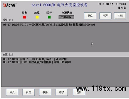 本套上位機(jī)軟件Acrel-6000電氣火災(zāi)系統(tǒng)。主要有以下功能特點(diǎn):友好的人機(jī)界面,可實(shí)時(shí)和定時(shí)采集現(xiàn)場(chǎng)設(shè)備的剩余電流數(shù)據(jù),并有報(bào)警提示聲光報(bào)警等功能。客戶(hù)可根據(jù)實(shí)際需要對(duì)漏電流報(bào)警值進(jìn)行設(shè)置,報(bào)警故障解除時(shí),可遠(yuǎn)方進(jìn)行復(fù)位。系統(tǒng)可對(duì)報(bào)警事件、日期、報(bào)警值、越線(xiàn)值進(jìn)行記錄,并生成報(bào)表,可對(duì)報(bào)警事件記錄進(jìn)行打印。