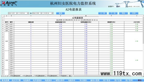 為了實(shí)現(xiàn)對本大樓內(nèi)各回路用電量的監(jiān)管,系統(tǒng)設(shè)計(jì)了電能管理報(bào)表,系統(tǒng)通過對有功電度的采集,按照回路名稱的不同,自動生成日報(bào)表、月報(bào)表和年報(bào)表并有報(bào)表打印功能,并可對某一回路的某一時(shí)間段內(nèi)的用電量進(jìn)行查詢,可以幫助物業(yè)建立有效的用能管理考核制度。通過系統(tǒng)的建設(shè)和制度的建立,使各入駐管理人員節(jié)能意識大大提高,有效的節(jié)約了能源消耗。