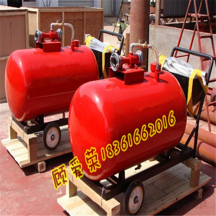 工作原理:需要滅火時,用消防水帶將泡沫槍和比例混合器連接,比例混合器入口端連接消防水帶并接入壓力水,當壓力水以很高的速度流過比例混合器的噴嘴時,比例混合器的室內形成負壓,泡沫液儲罐內的泡沫液在大氣的壓力作用下通過吸液管進入混合器,與壓力水按預定比例混合,形成泡沫混合液。當具有一定壓力的泡沫混合液通過泡沫槍時,吸入空氣,使泡沫混合液發泡并噴射覆蓋于著火液體表面,撲滅火災。