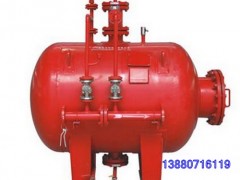 壓力式泡沫比例混合裝置主要由帶膠囊的泡沫液壓力儲罐與利用文丘里原理制成的PHY型壓力式比例混合器組成,當(dāng)系統(tǒng)管網(wǎng)中的水流經(jīng)比例混合器減壓孔板時,在孔板的前后會形成壓差。壓高處的一部分水(3%或6%)通過泡沫罐的進水管進入罐內(nèi),擠壓膠囊,將膠囊中的泡沫液通過泡沫罐的出液管擠壓至比例混合器低壓處與水混合形成泡沫混合液,形成的泡沫混合液輸出到泡沫產(chǎn)生設(shè)備(中、低、高倍數(shù)泡沫產(chǎn)生器,泡沫炮等)與空氣混合產(chǎn)生泡沫滅火。該裝置廣泛用于油庫、化工廠、機庫、油田、燃油鍋爐、地下車庫等場所。