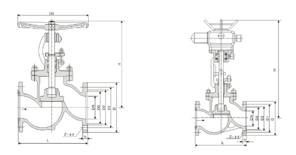 2、典昭的截止閥可以安裝在管道的任何位置上,介質從下往上流。