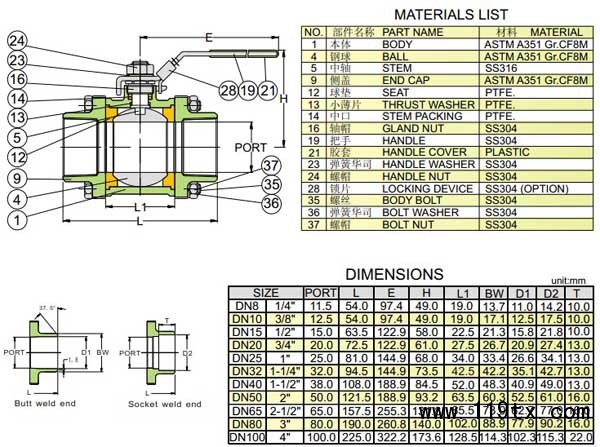 2、公稱(chēng)直徑: 1/4" to 4" (DN8 to DN100)