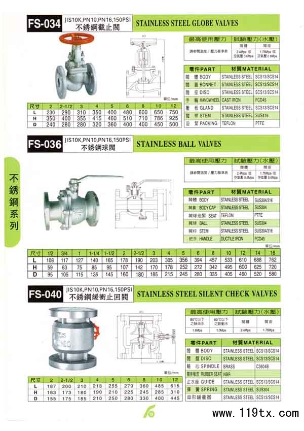 FS034不銹鋼法蘭截止閥密封面呈平面或錐面,閥瓣沿閥座的中心線作直線運動。閥桿的運動形式,(通用名稱:暗桿),也有升降旋轉桿式,(通用名稱:明桿)截止閥是指關閉件(閥瓣)沿閥座中心線移動的閥門。 根據閥瓣的這種移動形式,閥座通口的變化是與閥瓣行程成正比例關系。由于該類閥門的閥桿開啟或關閉行程相對較短,而且具有非??煽康那袛喙δ埽钟捎陂y座通口的變化與閥瓣的行程成正比例關系,非常適合于對流量的調節。因此,這種類型的閥門非常適合作為切斷或調節以及節流用。