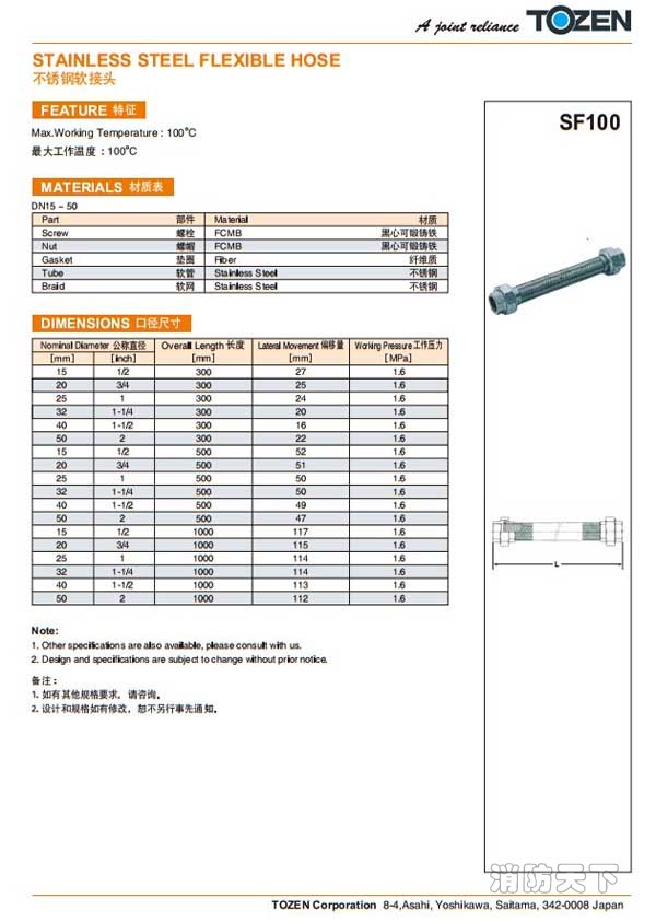 日本TOZEN SF100內螺紋金屬軟接設計規范: