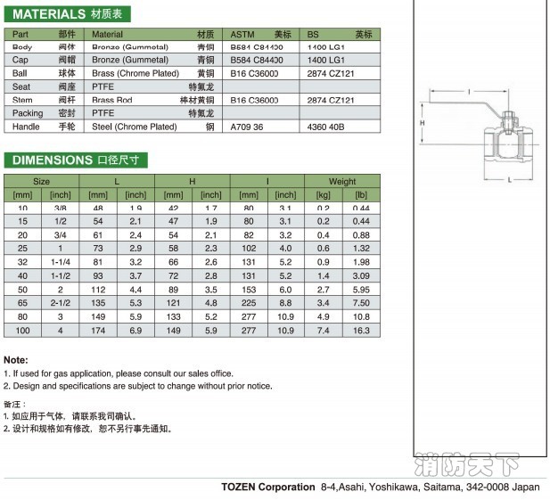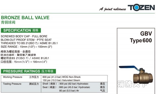 日本TOZEN青銅球閥結構緊湊,密封可靠,結構簡單,維修方便,密封面與