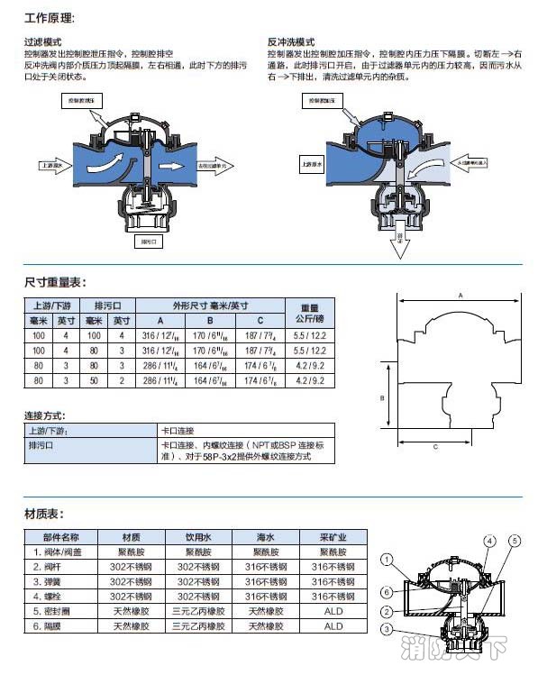 ■ 抗銹蝕性強(qiáng)(另提供可用于海水和腐蝕性介質(zhì)的反沖洗閥)