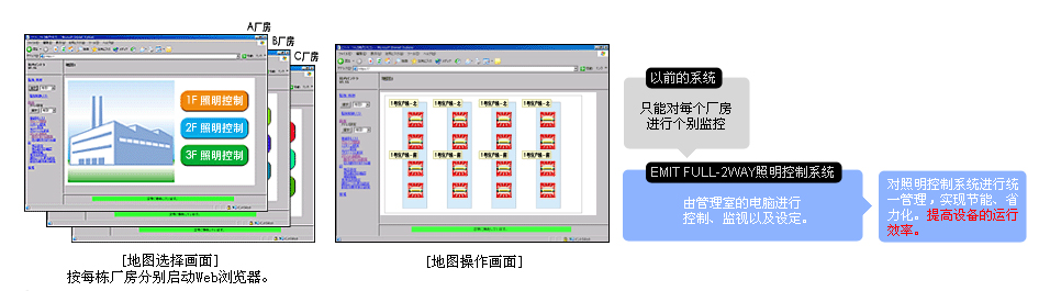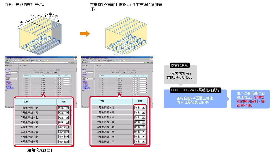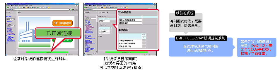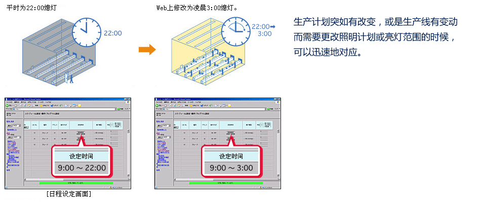 在Web畫面上簡易地進行照明的監控與設定。 |