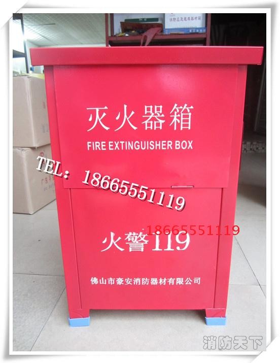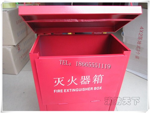 箱門可選用金屬或非金屬材料。當箱門采用玻璃時,應使用厚度不小于3 mm的平板玻璃。滅火器箱體應端正,不應有歪斜、翹曲等變形現象。置地型應能平穩安放,不應有傾斜搖晃。滅火器箱體焊接或鉚接應牢固,不應有燒穿、焊瘤、毛刺和鉚印等缺陷。箱體表面應作防腐處理,涂層應光滑平整。箱門、箱蓋開啟操作應輕便靈活,無卡阻現象。滅火器箱外表面應為大紅色,正面上醒目標注中文“滅火器箱”和英文“Fire Extinguisher Box”字樣,字色為白色,箱門采用玻璃時,字色為紅色。滅火器箱的外形尺寸應符合我國公共安全行業標準GA 139—1996《滅火器箱》的規定。