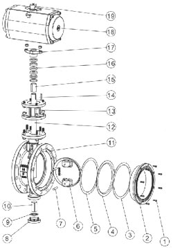 D643H氣動(dòng)硬密封法蘭蝶閥主要零件材質(zhì)表