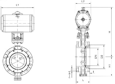 D643H氣動(dòng)硬密封法蘭蝶閥主要外形及連接尺寸