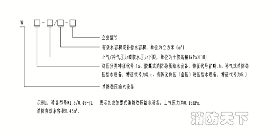本設(shè)備的最高工作壓力分別為0.6mpa、1.0mpa、1.6mpa,消防儲水容積大于150L、300L、450L,穩(wěn)壓水容積大于50L,用于消火栓系統(tǒng)時,水槍每股流量為2.5L/S、5L/S,充實水柱長度為7M、10M、13M;用于自動噴水系統(tǒng)時,每個噴頭流量為1.0L/S,噴頭壓力為0.1MPA。