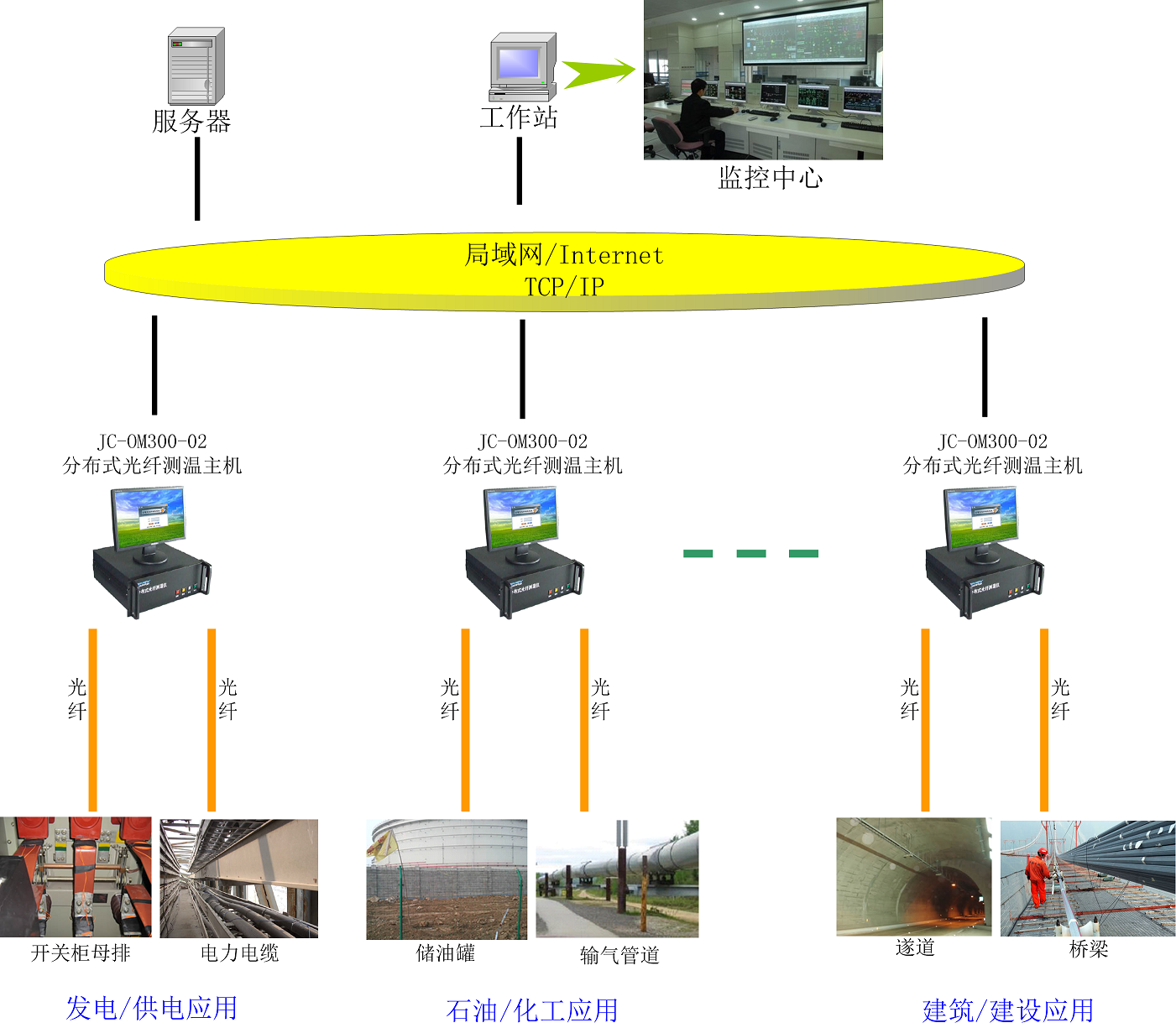 分布式光纖測溫系統采用高品質的脈沖光源、光接收設備和高速的信號采集處理技術,就可以得到沿光纖所有點的準確溫度值。是目前性能最好,技術最先進的分布式光纖測溫系統。能夠實現對距離最長30km;空間分辨率1m的溫度進行測量,也就是相當于30,000個測量點。JC-OM300產品包括2km、4km、6km、8km、10km、12km、15km和30km八種系統型號,根據實際工程的大小,用戶可以選擇相應的產品型號。同時JC-OM300的測量時間遠遠優于其他產品,對于實時的火災預警具有非常重要的意義。