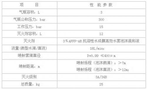 背負式細水霧(泡沫)滅火槍是一種單相流細水霧滅火裝備。采用高壓氣體驅動,使滅火劑以較大的動能,從細水霧槍口高速噴出,以直流或細水霧的形式射向火灶,在極短的時間內將火撲滅。屬消防單兵作業裝備。可撲救A、B類初期火災,適用于居民區、港口碼頭、高速公路、商業區、圖書檔案館等缺水環境中的消防滅火。