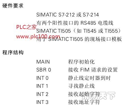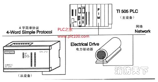 本例描述了如何將SIMATIC S7-212(或S7-214)與SIMATIC T1505可編程邏輯控制系統連接起來。主設備(T1505}通過現場接u模板((FIM)向從設備(S7-212發送信息。數據傳輸的協議為4字(4-Word)簡單協議。這樣T1505可控制新型SIMATIC PLC及其它支持此協議的設備(例如某些SE &A馭動器)。