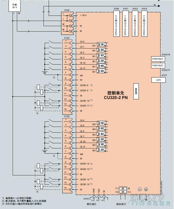 CU320-2 PN 控制單元是通過(guò) CU320-2 PN 和 PROFIdrive 協(xié)議與上位控制系統(tǒng)通訊的。