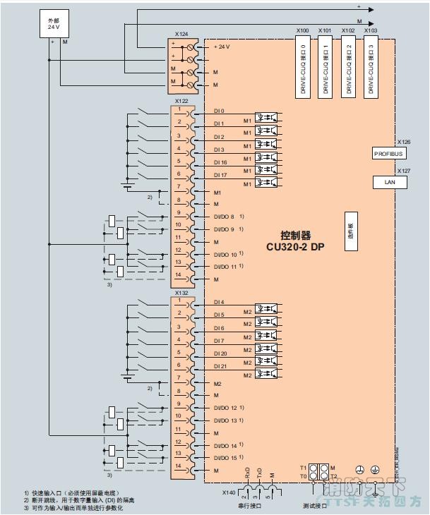 CU320-2 DP 控制單元標(biāo)配的接口: