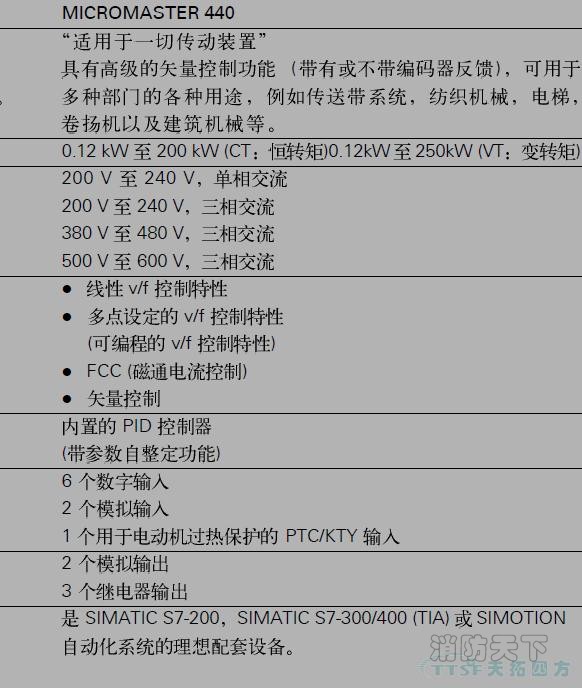 MICROMASTER 440 具有缺省的工廠設置參數,它是給數量眾多的簡單的電動機控制系統供電的理想變頻驅動裝置,由于MICROMASTER 440 具有全面而完善的控制功能,在設置相關參數以后它也可用于更優質的電動機控制系統MICROMASTER 440 既可用于單機驅動系統也可集成到自動化系統中。