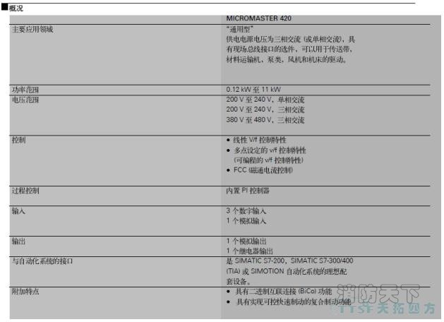 MICROMASTER 420 變頻器適合用于各種變頻驅動裝置,尤其適用于水泵、風機和傳送帶系統的驅動裝置。它的特點是設備性能面向用戶的需求,并且使用方便。它的電源電壓規格很多,因而可在世界范圍內應用。
