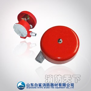 水力警鈴是濕式報警閥、雨淋閥、預作用裝置的一種全天候的水壓驅動機械式警鈴,主要用于自動噴水滅火系統。當報警閥打開消防水源后,具有一定壓力的水流沖動葉輪打鈴報警。