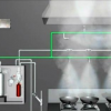 5、廚房設(shè)備自動(dòng)滅火裝置所保護(hù)的范圍:安裝自動(dòng)滅火裝置的灶臺(tái)煙鍋和油煙罩和排油煙管道內(nèi)部。