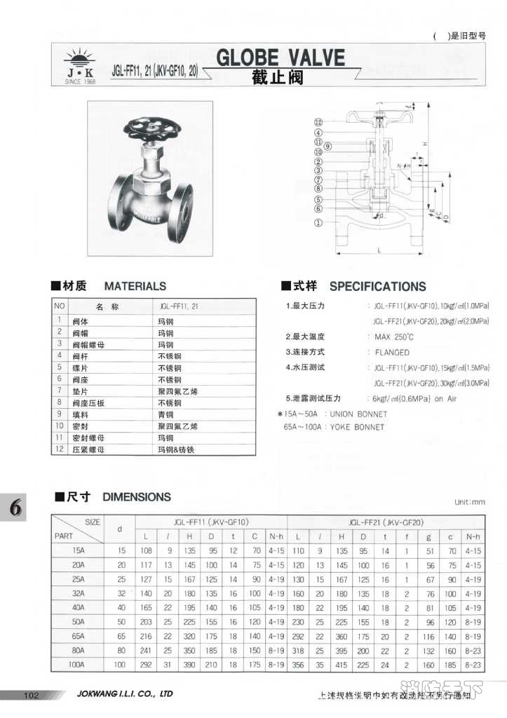 韓國朝光JGL-FF21、JGL-FF11截止閥