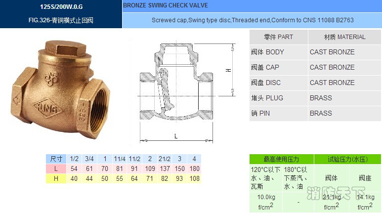 正品臺灣東光FIG.326青銅橫式止回閥 東光青銅止回閥 絲口止回閥
