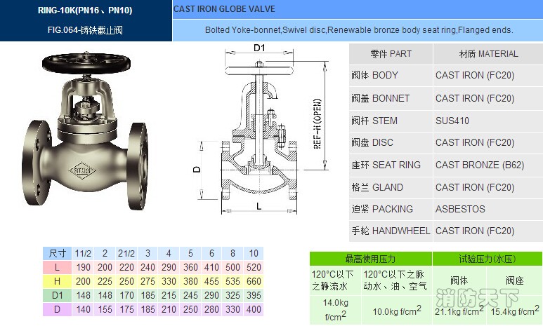 臺(tái)灣東光FIG.064鑄鐵截止閥 JIS10K鑄鐵截止閥 水油空氣截止閥