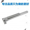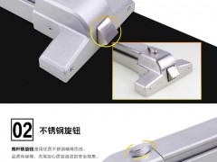本產品采用不銹鋼材料制造而成,表面拉絲,結構大方簡樸。使用方便,不易省壞且電池使用周期長。報警標示以中英文方式顯示(長度以消防鎖推桿桿長為準),紅底白字,采用2.5mm厚的塑料板刻字制成,固定至推桿表面。