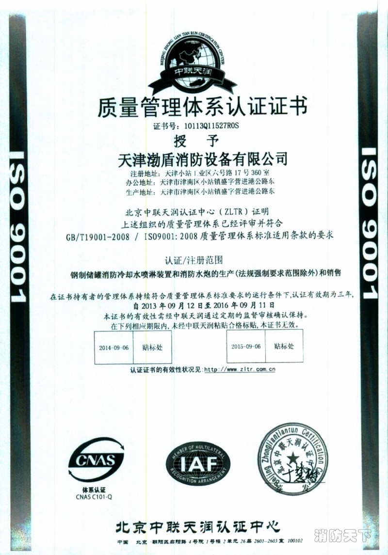 質量管理體系認證證書