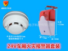 車廂用電一般為24V,所以我們采用24V煙感探測器,信號為開關量輸出,可以控制電路的開關,當車廂煙感探測器探測到火災煙霧時,立即連接駕駛室的聲光報警器發出聲光報警。