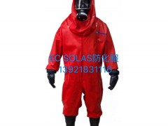1.本品為氣密型重型防化服(俗稱重型防化服),與空氣呼吸器同時使用。空氣呼吸器外置。