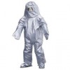 B2防火隔熱服采用七層特殊的復合材料制成,并附有頭罩。頭罩上的面屏由經過鍍金壓膜復合處理的安全玻璃制成,面屏視野寬闊并可替換,允許配套使用呼吸器用全面罩。此避火服的背部有可以置放呼吸器的背袋;整件連體服采用后開門襟,拉鏈外的翻邊可用按扣固定,防止卷邊。