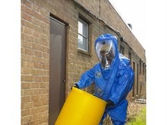 雷克蘭Lakeland Interceptor INT640攔截者標準A級氣密型防化服全封閉型前入式A級氣密型防化服,呼吸器內置型設計,全部邊縫采用熱合膠帶焊縫結構。正面門襟采用48英寸長氣密型拉鏈,配合雙層魔術搭扣門襟。面屏采用特殊工藝在40mil厚的PVC軟質面屏外涂敷10mil厚的特氟隆防化涂層。手部防護采用高防化性能丁基橡膠手套,腳部為一體式防化襪套及護靴襟。背后配有2個獨立排氣閥,服裝內部配備附加腰帶,行動更自如。附送便攜式獨立儲存袋。