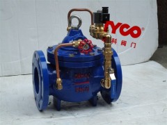 TY-700X水泵控制閥,是一種安裝在高層建筑以及其他給水系統的水泵出口處,防止介質倒流的逆止類閥門。當水泵即將停止供水前,閥門先行緩幔關閉90%左右,防止突然停泵而產生的水錘和水擊聲:當水泵完全停止后,閥門再完全關閉,防止泵出的水回流,有效地保護水泵,免受回流的沖擊而產生反轉。該產品是水泵出口必不可少的保護裝置。閥門呈流線型設計,通過電磁閥的導控實現準確的啟閉,使用安全可靠,有效地防止水錘和水擊聲,使用壽命長,安裝、維修方便。