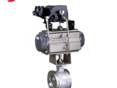 氣動V型調節球閥利用球芯轉動與閥座相割打開的面積(V形窗口)來調節介質流量,調節性能、自潔性能好,適用于高粘度、懸浮液、紙漿等不干凈、含纖維介質場合。采用直連方式與執行機構連接,具有結構緊湊、尺寸小、重量輕,阻力小、動作穩定可靠等優點。執行機構根據用戶要求配置GT、AT、AW系列等氣動活塞式執行機構。
