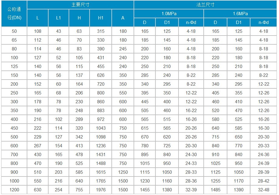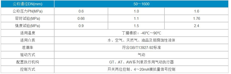 D671J氣動襯膠蝶閥主要技術(shù)參數(shù)