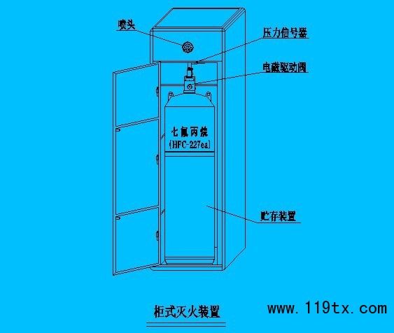 雙瓶組:滅火裝置主要由兩個儲存瓶組成的柜式滅火裝置 。