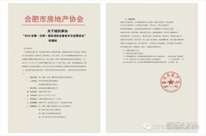 安徽合肥市房地產(chǎn)協(xié)會本著服務(wù)會員單位,積極參與這一消防行業(yè)盛會,將進一步發(fā)揮行業(yè)平臺效應。