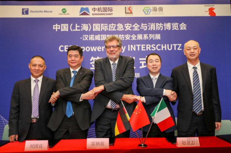 5月8日,德國漢諾威展覽公司、漢諾威米蘭展覽(上海)有限公司、中國機械國際合作股份有限公司、廣州立升展覽服務有限公司和廣東新海俊發展有限公司在深圳簽署合作協議,五家單位將于2019年11月6-8日在上海新國際博覽中心共同舉辦中國(上海)國際應急安全與消防博覽會(以下簡稱:CEFE Powered by INTERSCHUTZ)。