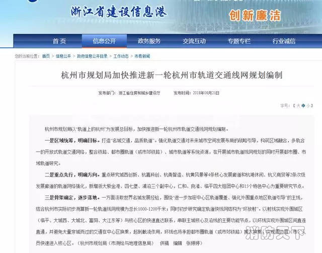 2018年8月21日,浙江省住房和城鄉建設廳官網上發布了一則和杭州軌道交通有關的信息——杭州市以“軌道上的杭州”為發展總目標,杭州市規劃局正在加快推進新一輪杭州市軌道交通線網規劃編制。