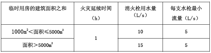 5.3.5 臨時用房的臨時室外消防用水量不應小于表5.3.5 的規定: