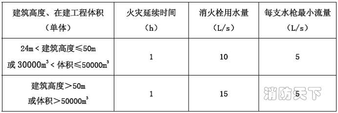 5.3.8 建筑高度大于24m 或單體體積超過30000m3 的在建工程,應設置臨時室內消防給水系統。