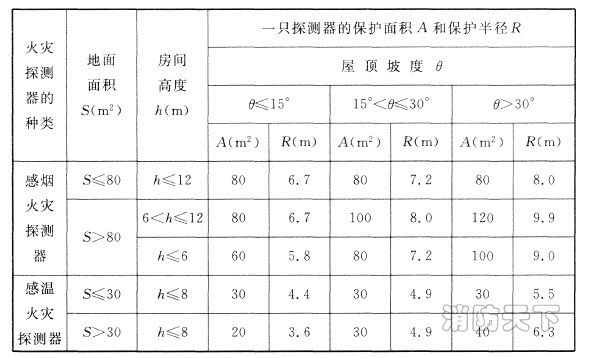 注: 建筑高度不超過14m 的封閉探測空間,且火災(zāi)初期會產(chǎn)生大量的煙時(shí),可設(shè)置點(diǎn)型感煙火災(zāi)探測器。