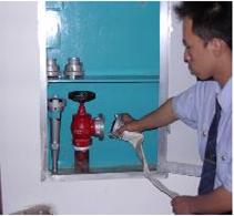 5、手握水槍頭及水管,打開水閥門,即可滅火
