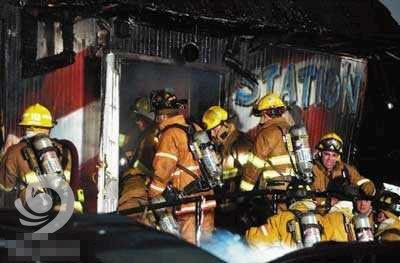 2月21日,美國羅得島州西沃威克一家夜總會門口,消防隊員準備入內滅火并尋找遇難者。(資料圖)