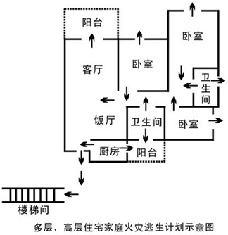 記得一定要把家里所有的房門、窗戶、樓梯都標(biāo)注在圖上,這樣能夠讓您和您的家人對緊急情況下家里的逃生路線一目了然。同時,請別忘記標(biāo)注房屋附近的疏散樓梯,因?yàn)槌鞘芯用翊蠖嘧≡诙鄬雍透邔幼≌锩?