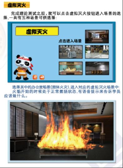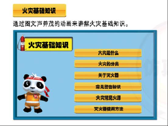 5、教育趣味化(火災(zāi)基礎(chǔ)知識、逃生常識部分、滅火仿真體驗(yàn)部分,采用了游戲、動畫、口訣、仿真技術(shù)等多種表現(xiàn)形式進(jìn)行交互教學(xué)體驗(yàn),實(shí)現(xiàn)了寓教于樂)。